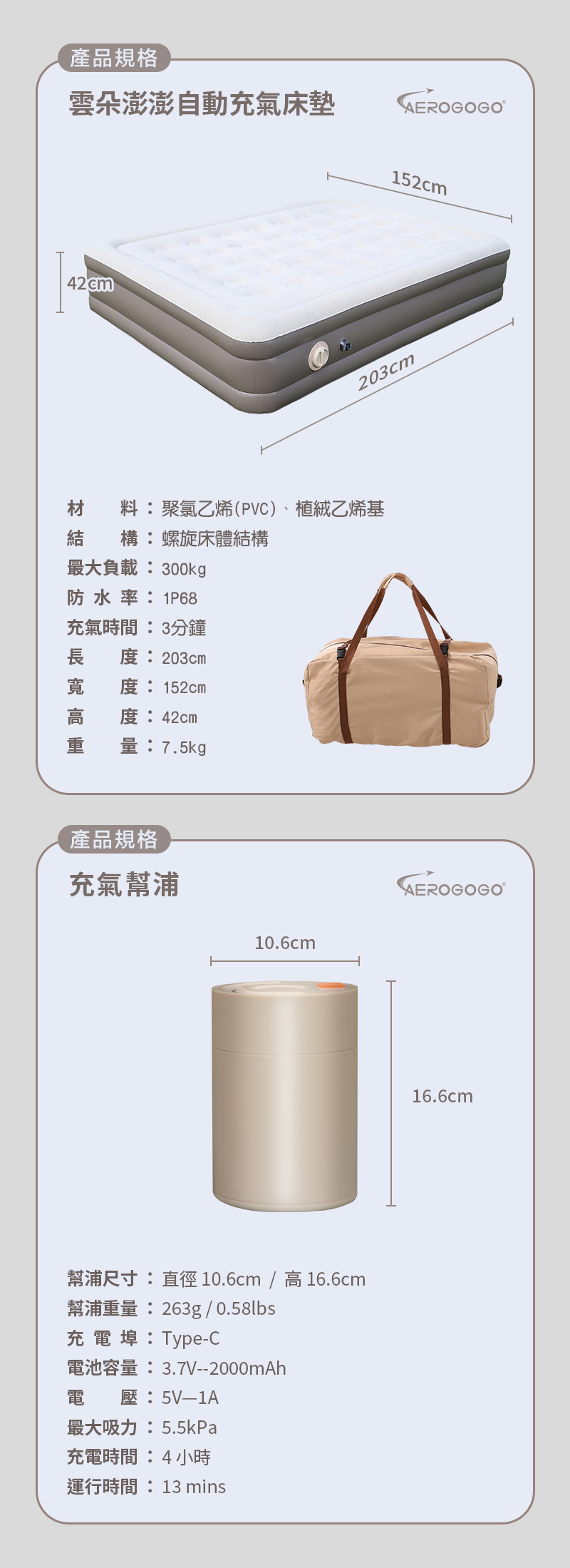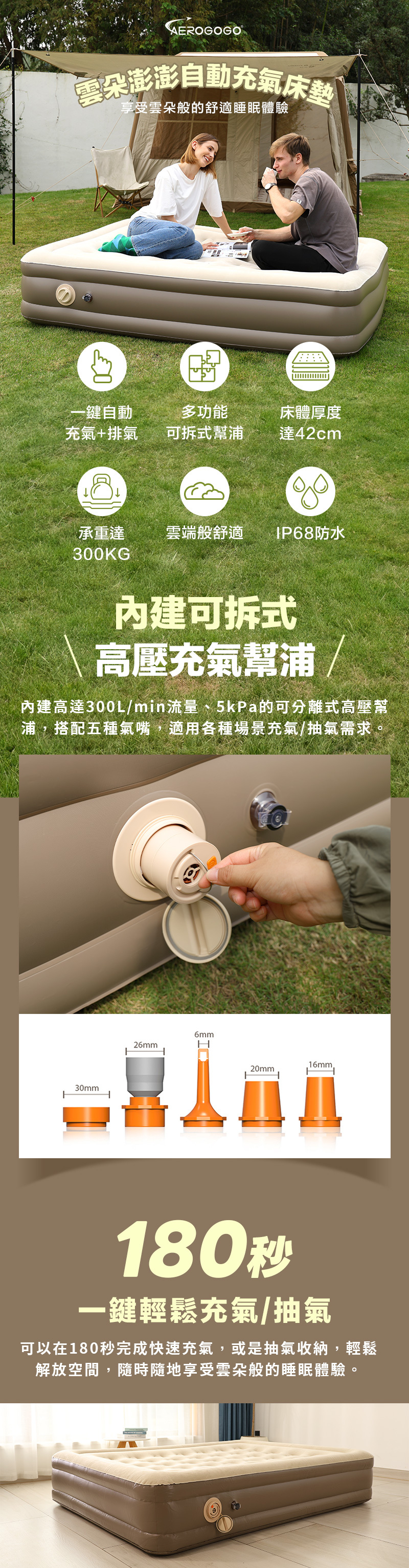 品名:Aerogogo 雲朵澎澎自動充氣雙人床墊