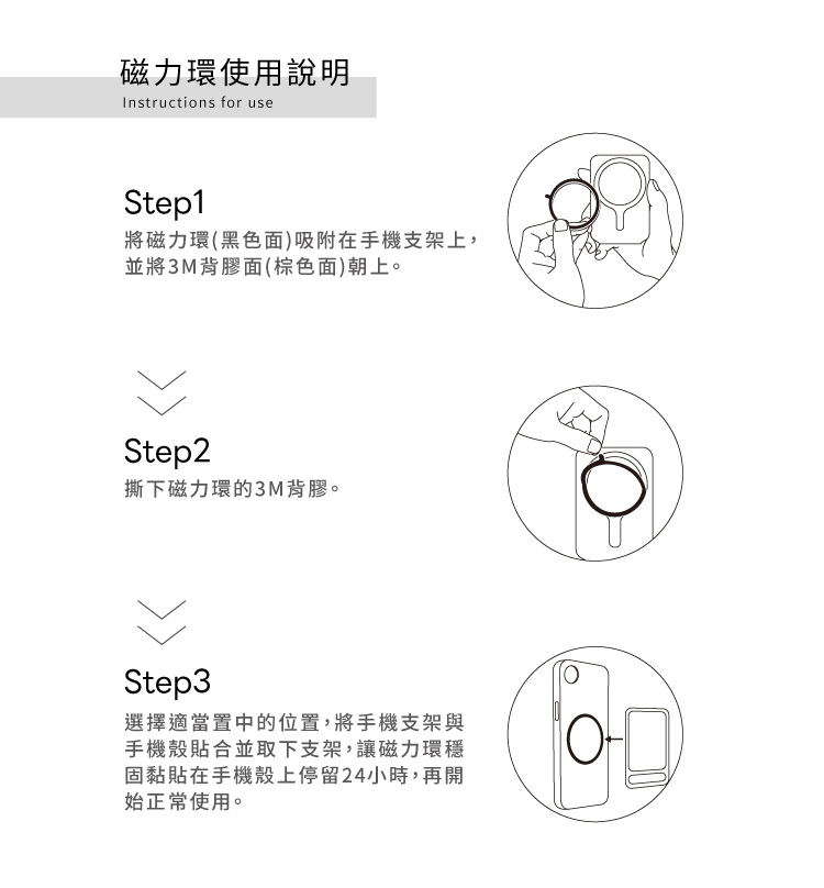 *引磁環不得重複使用,請貼於保護殼外,保護殼材質不得為矽膠/橡膠/皮革/磨砂玻璃/布料/木質/霧面、不平整或防水表面、熱塑性彈性體(TPE)材質等。